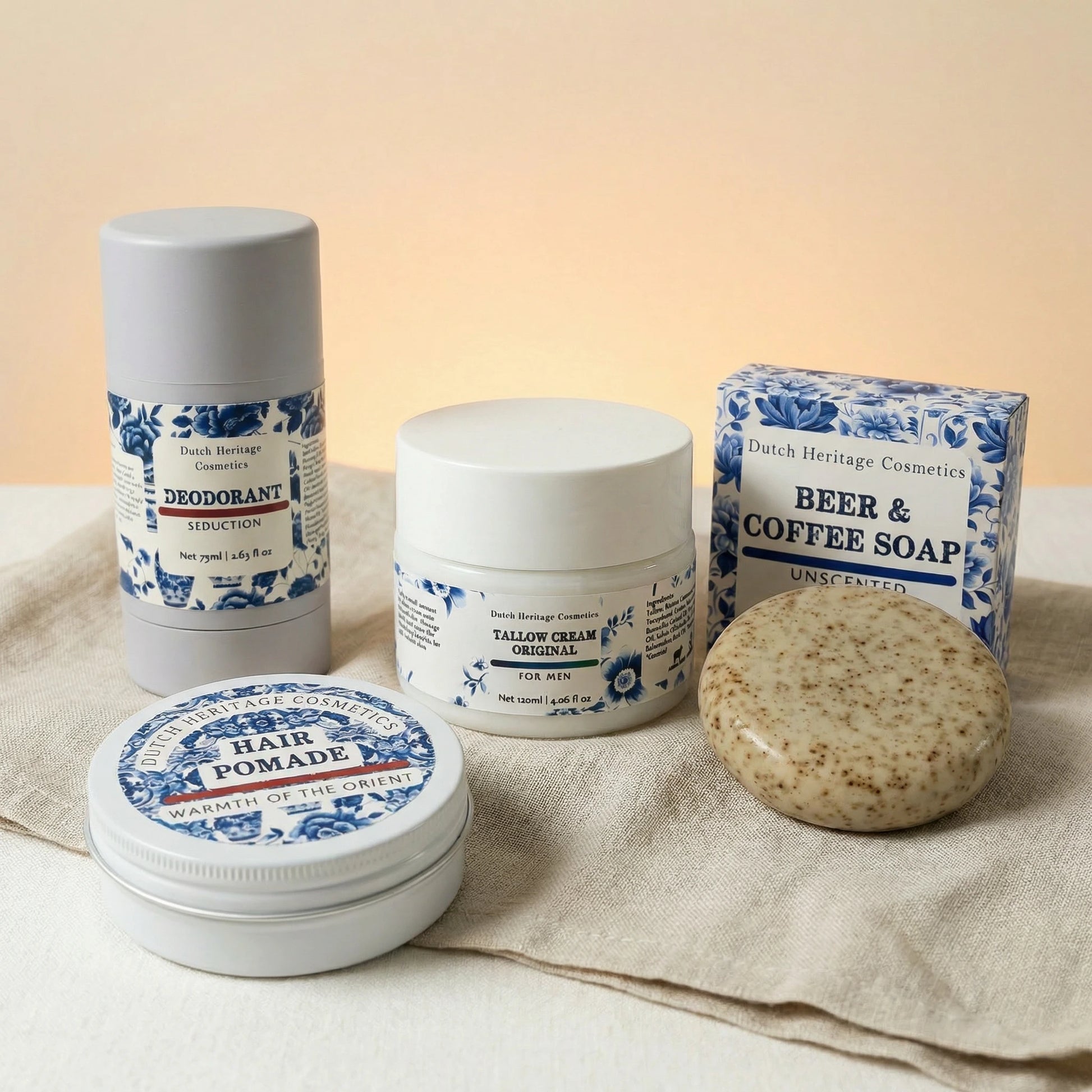 This bundle brings together four of our best selling men’s products: a deeply nourishing tallow cream, our most popular natural deodorant, a styling pomade, and an exfoliating soap. Everything you need for skin, hair and scent, without unnecessary fillers or synthetic ingredients.